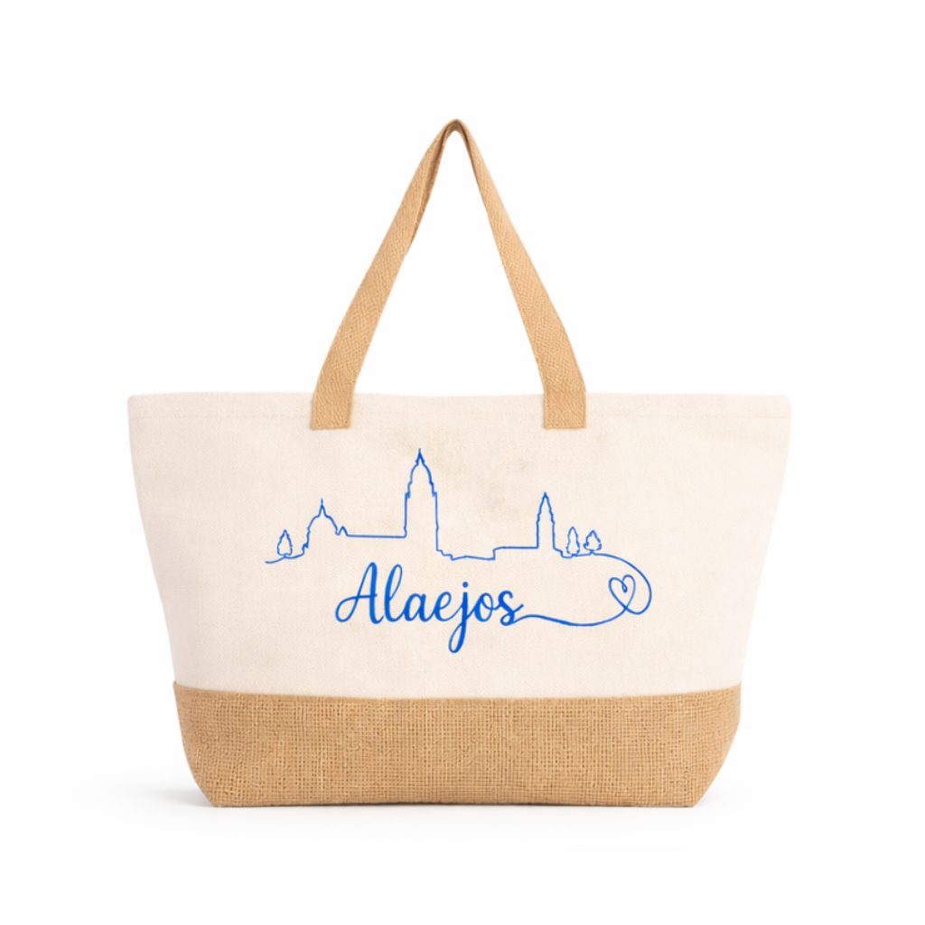 Luce con orgullo tus raíces con este bolso exclusivo que rinde homenaje a Alaejos. Su diseño bordado presenta el skyline del pueblo con un acabado delicado, acompañado del nombre “Alaejos” y un pequeño corazón que le da un toque cálido y especial.