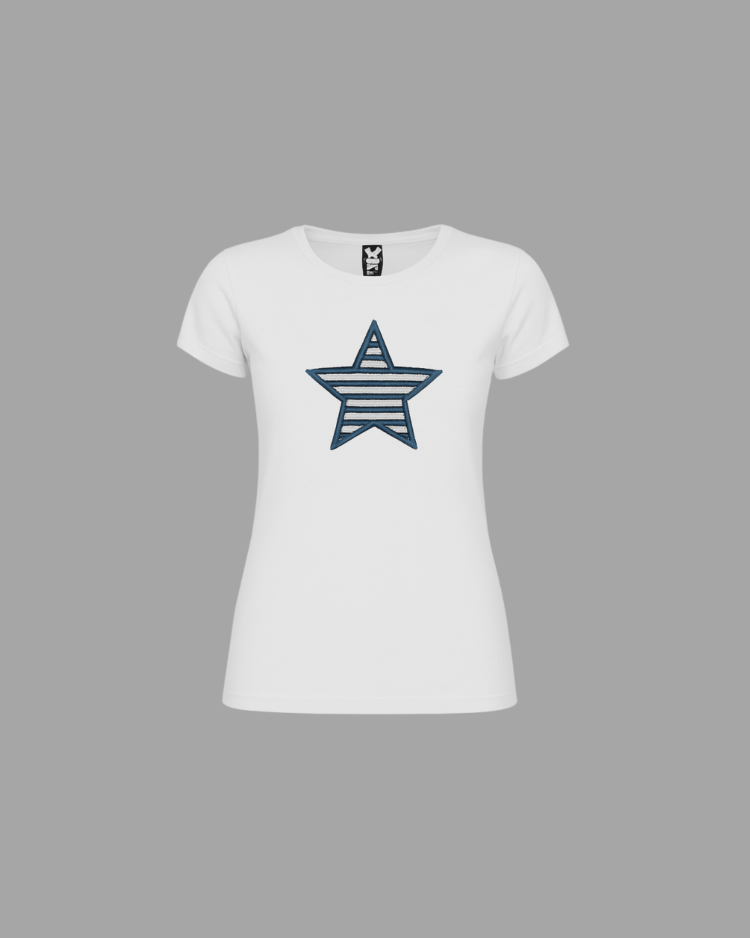 Esta camiseta de mujer incluye un bordado en forma de estrella, sutil, bonito y lleno de significado.