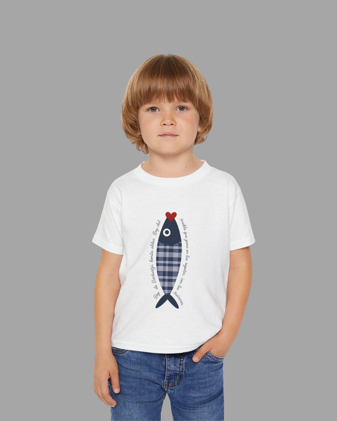 Tus hijos también se merecen vivir las fiestas de El Carmen con identidad y orgullo con esta camiseta unisex inspirada en el alma marinera de Santurtzi. Confeccionada en tela blanca de alta calidad, su diseño rinde homenaje a la tradición y al carácter festivo del pueblo.