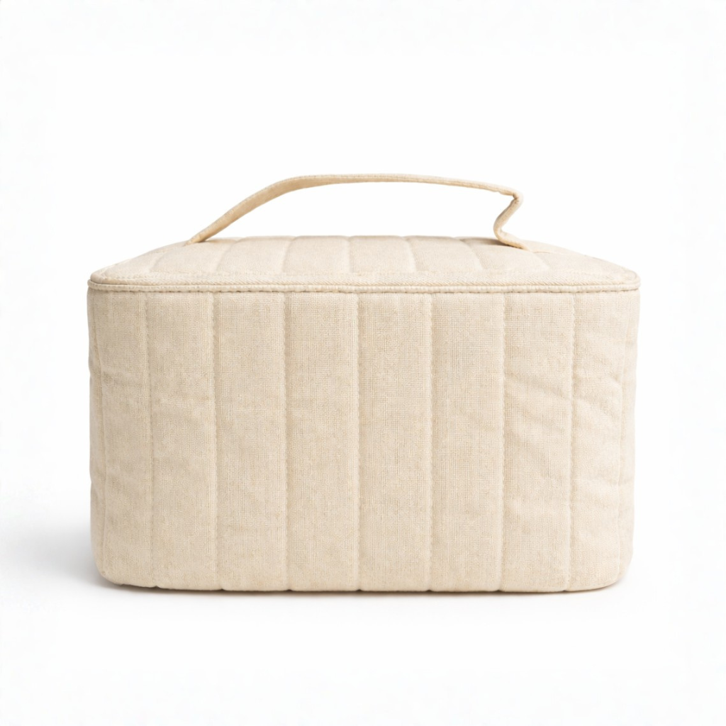 Incluye un neceser bordado, fabricado en poliéster de tacto suave y cuerpo firme, ideal para mantener todos los productos organizados.